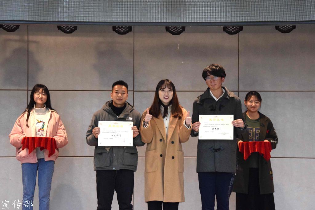最后,团委副书记刘博闻同学宣读表彰决定,其中5位部长和16名委员获得“员工工作先进个人”称号,宣传部和新媒体中心荣获2019-2020学年第一学期太阳成集团tyc522cc团委员工会“优秀部门”。在全场的掌声中,团委员工会主席团为受表彰个人及集体颁奖。