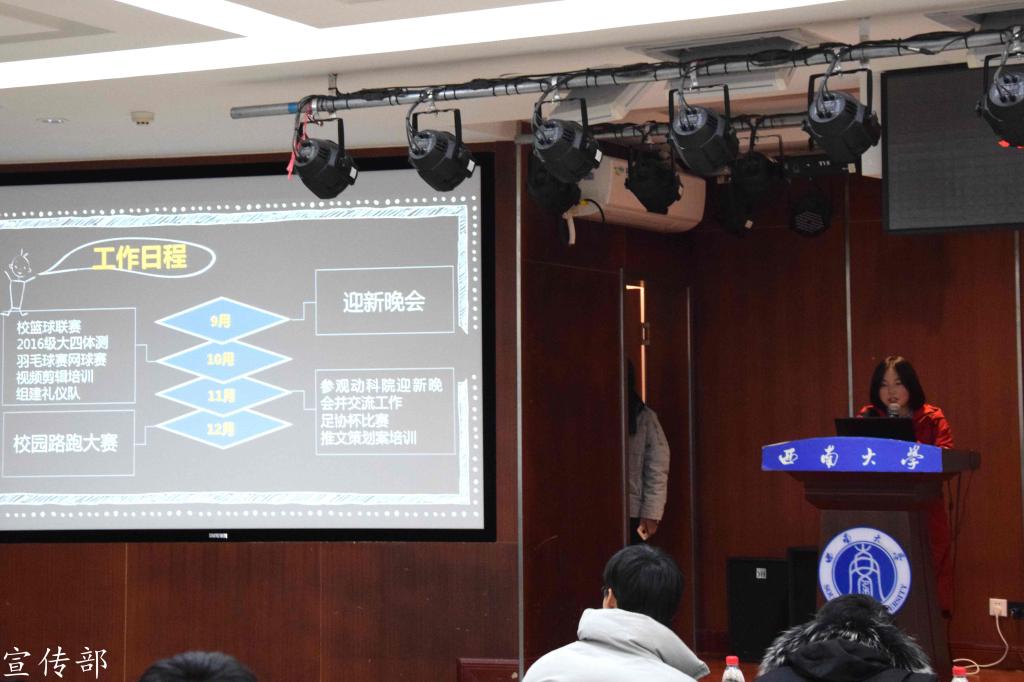 接着,各部门代表结合他们精心准备的PPT向大家介绍了部门工作内容,并对这一学期的活动成果进行了详细总结。同时也通过多样的形式展示了各部门内部的日常生活,现场掌声欢笑声交织,气氛活跃。