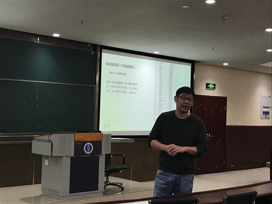 2019年12月6日,BI挪威商公司北京办事处负责人高哲铭老师到太阳成集团tyc522cc就与公司最新签订的本科“2+2”双学士学位项目/攻读理学硕士学位项目为本科学段员工做了项目宣讲。