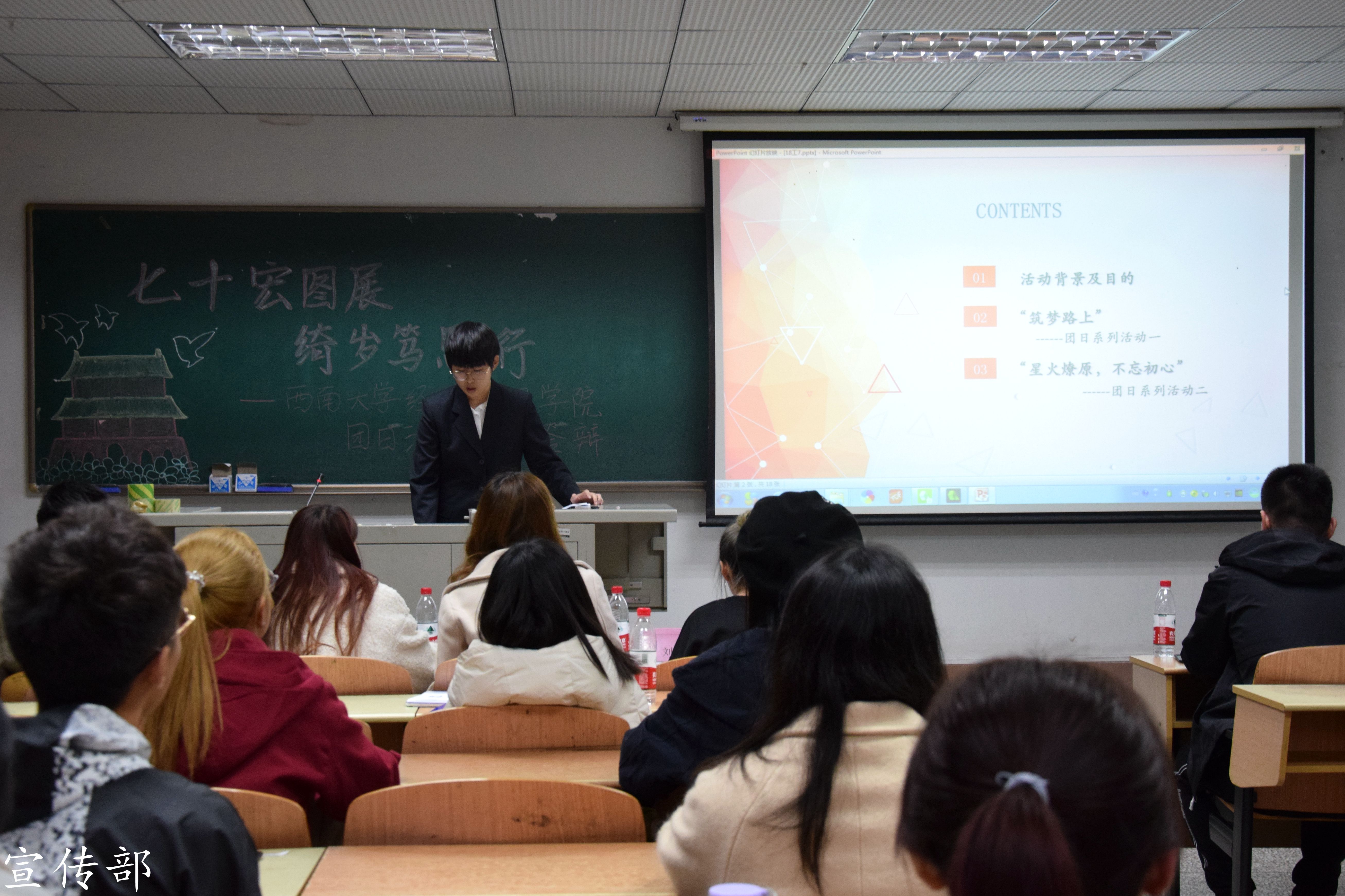 11月23日晚七点,太阳成集团tyc522cc团日活动立项答辩会在31教101、102、103教室举行。本次活动以中华人民共和国成立七十周年为背景,围绕“七十宏图展,绮岁笃思行”的主题进行,共有36个支部参加此次答辩会。