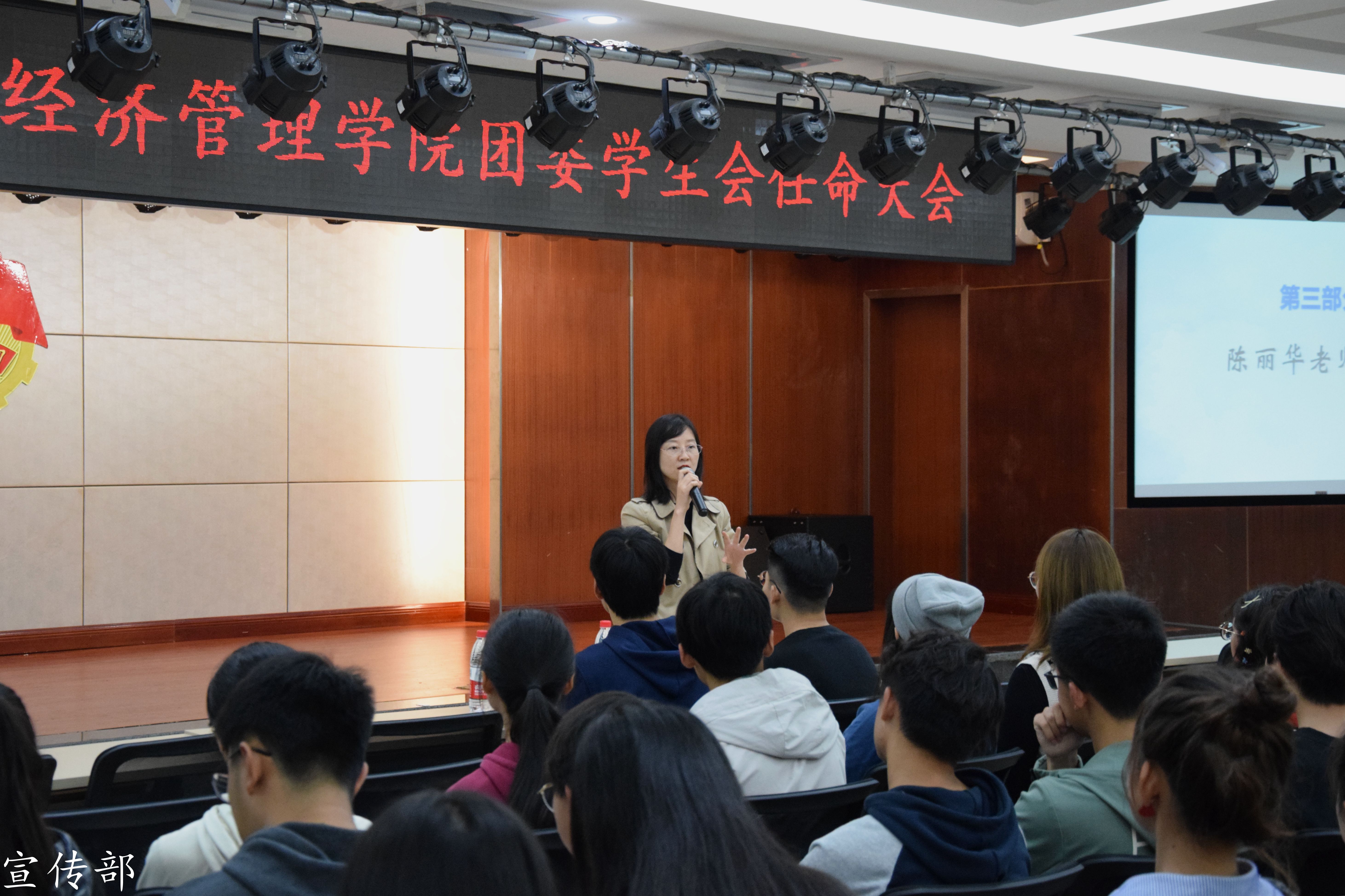大会伊始,团委书记陈丽华老师宣读了第十五届团委员工会成员任命文件。她希望团委员工会全体成员都可以在员工工作的过程中服务同学,并用朴实深刻的话语表达了对同学们的期许和祝愿。陈老师希望每个成员都能成长为一个自带光芒人,在生活和工作中做到眼中有光、行动闪光、点亮别人的光。随后,团委员工会副主席冯文平同学结合自身工作经历,对新生委员提出了殷切期望。委员代表王佳瑜分享了自己这近两个月员工工作的收获。