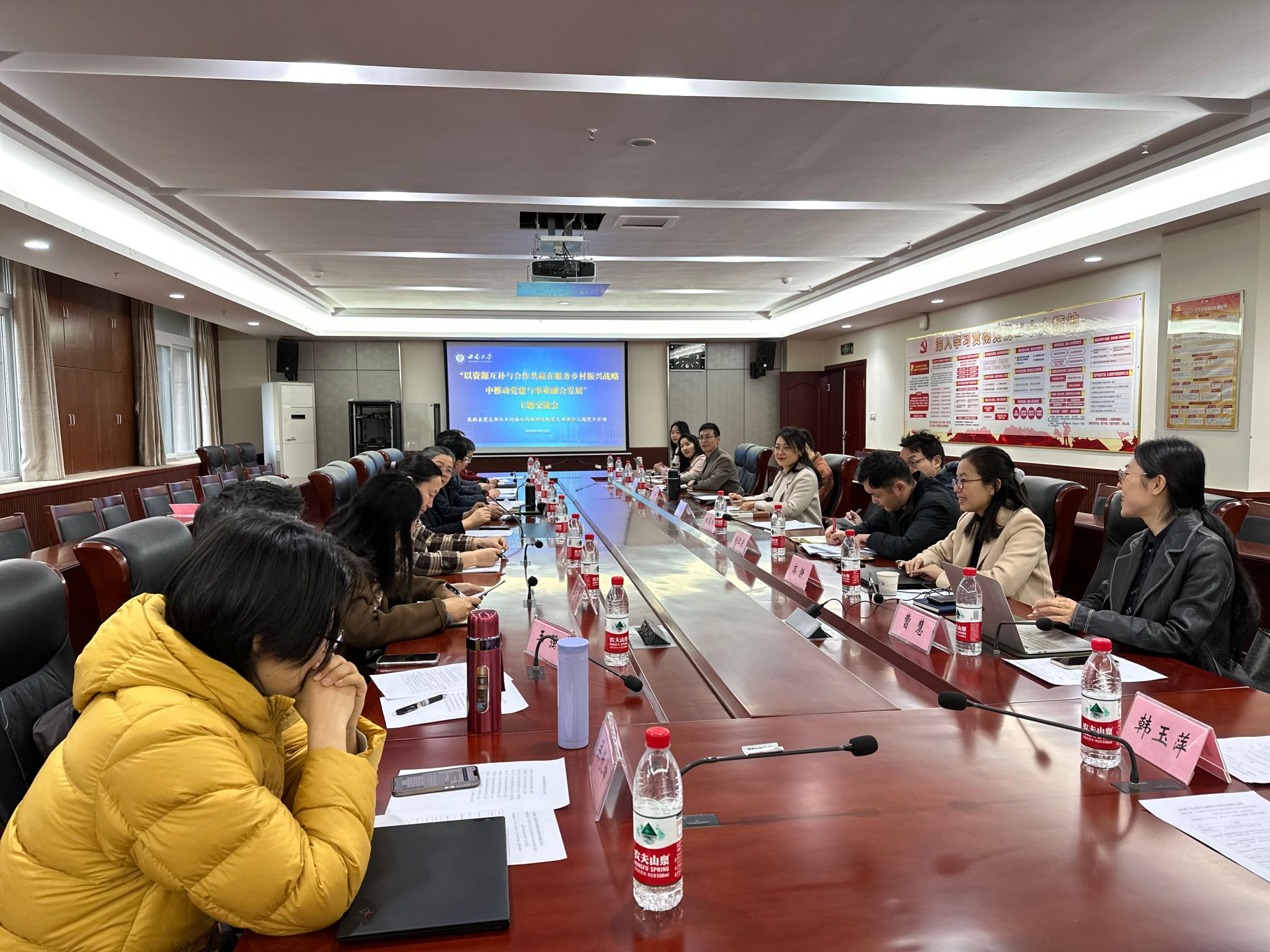 为推动高质量党建引领事业高质量发展,2025年3月21日,公司农林经济管理系教师党支部与乡村振兴战略研究公司党支部,围绕“以资源互补与合作共赢在服务乡村振兴战略中推动党建与事业融合发展”主题,在太阳成集团tyc522ccA204会议室开展了联合主题党日。支部党员及公司农林经济管理系教职工代表近30人参会,活动由农林经济管理系教师党支部副书记齐皓天主持。