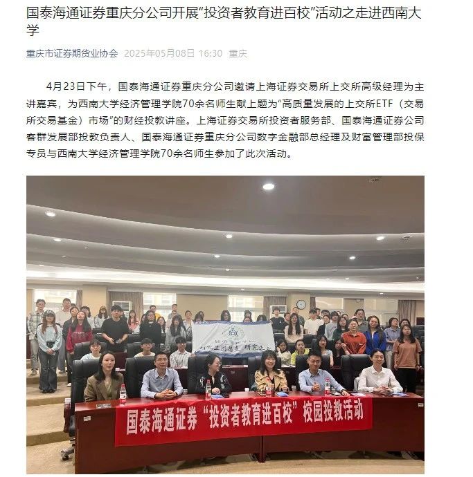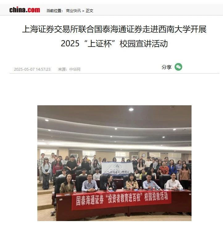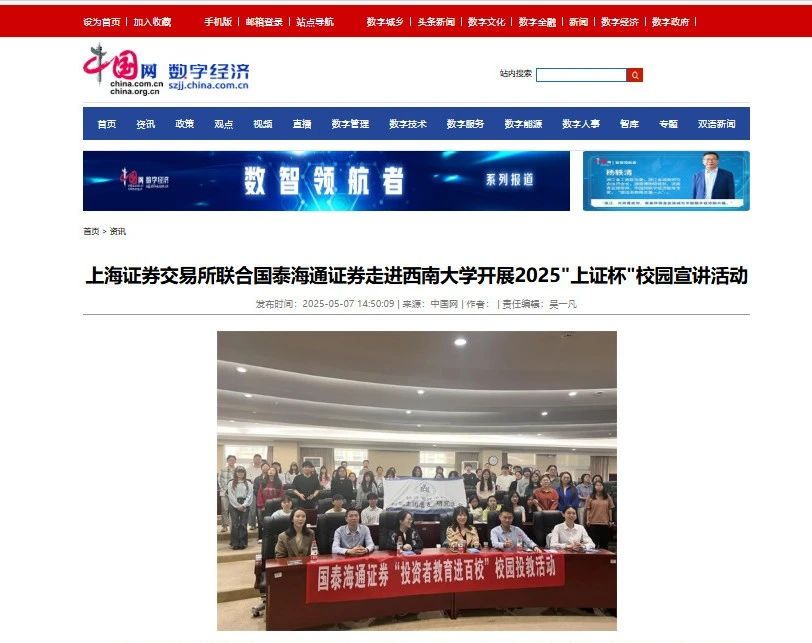在公司开展的上交所2025“上证杯”走进校园宣讲活动获中国网、中国日报网等多家媒体报道