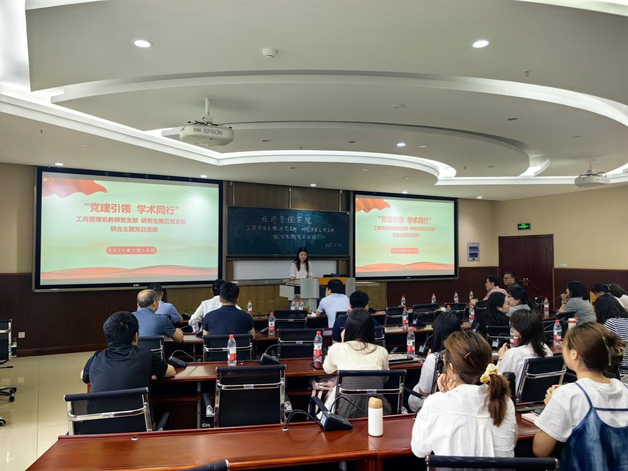 为进一步发挥党支部在科研与学业方面的引领作用,推动党建工作与学术研究深度融合,5月16日下午,公司工商管理系教师党支部与研究生第五党支部联合开展了“党建引领 学术同行”主题党日两个支部共计50余名师生参加本次活动,活动由研究生第五党支部纪检委员张莎莎主持