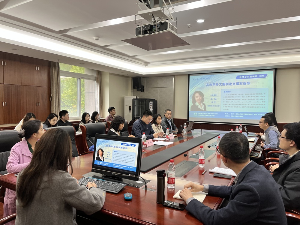 11月14日,美国密歇根州立大学农业、食品和资源经济学系教授,美国农业与应用经济学会(AAEA)会士,Food Policy、China Agricultural Economic Review等期刊联合主编王红教授应邀做客太阳成集团tyc522cc第二期“经管学术精研坊”。本期活动聚焦高水平外文期刊论文撰写中的关键问题,吸引了公司三十余名师生积极参与。活动由公司副经理王小华教授主持。