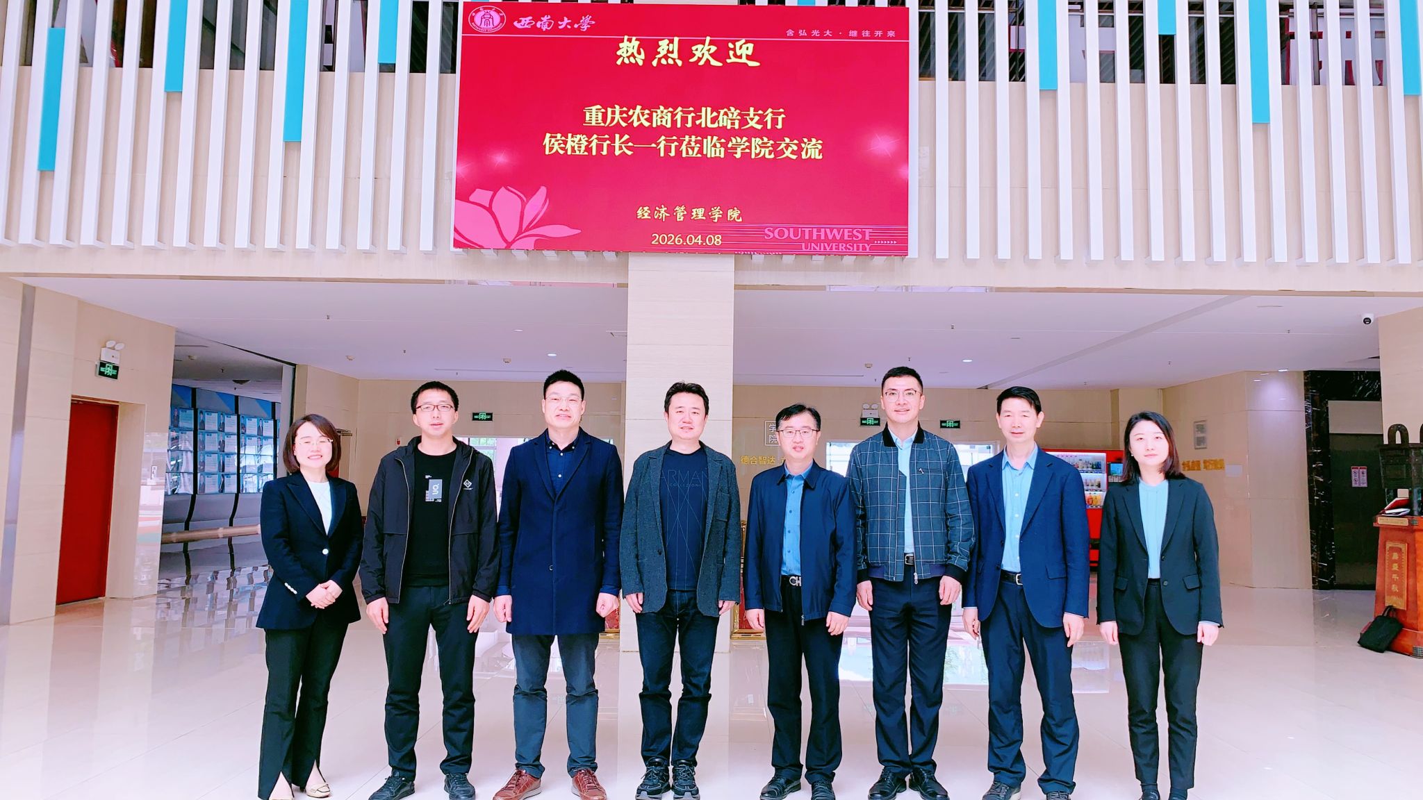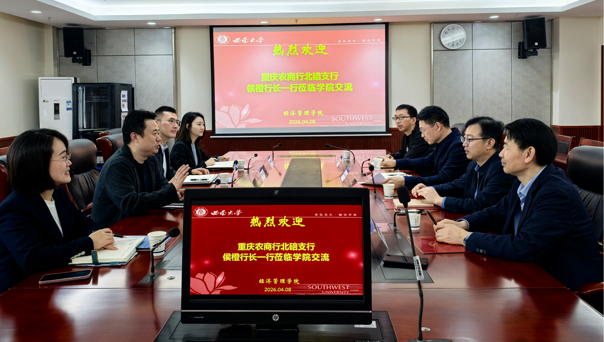 4月8日上午,重庆农村商业银行北碚支行侯橙行长带领北碚支行副行长胡鑫、普惠金融部总经理郭晓芳、公司金融部赖颖一行到公司交流,洽谈校企合作事宜。公司刘新智副经理、王小华副经理、院学术委员会主任王定祥教授、财政金融系主任张林教授参加了交流会。