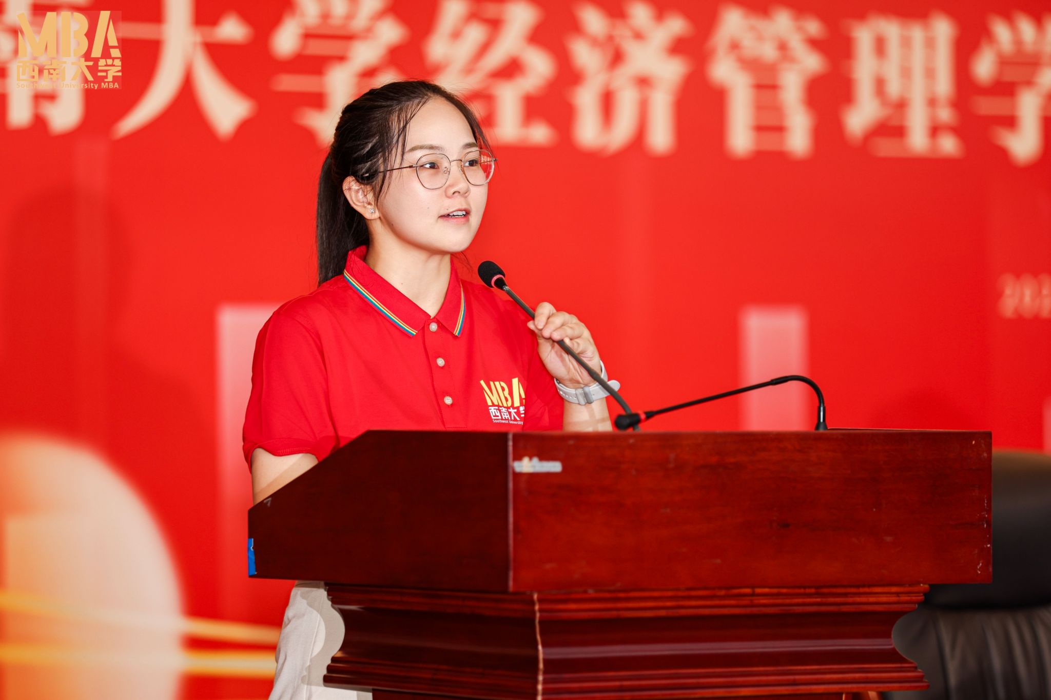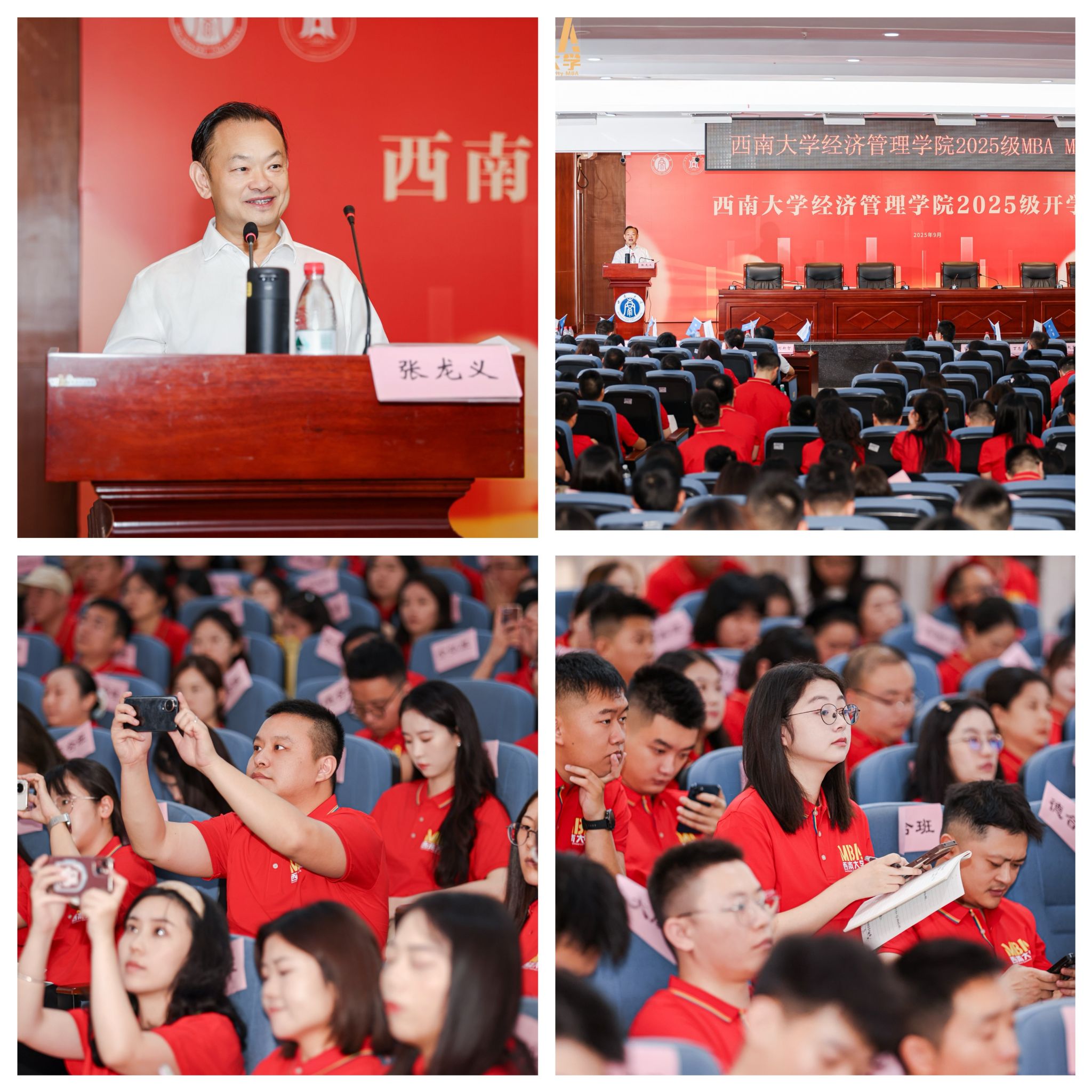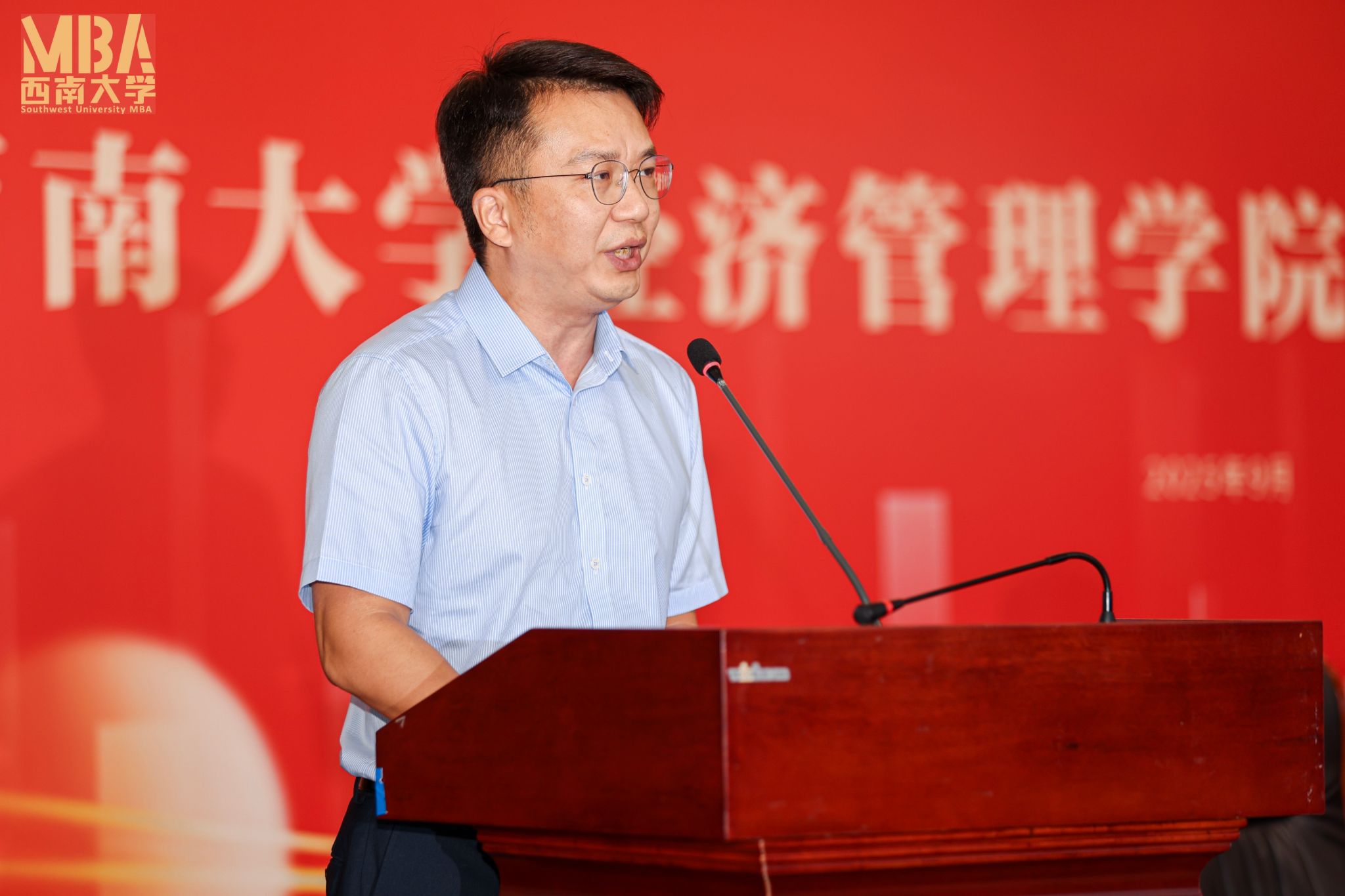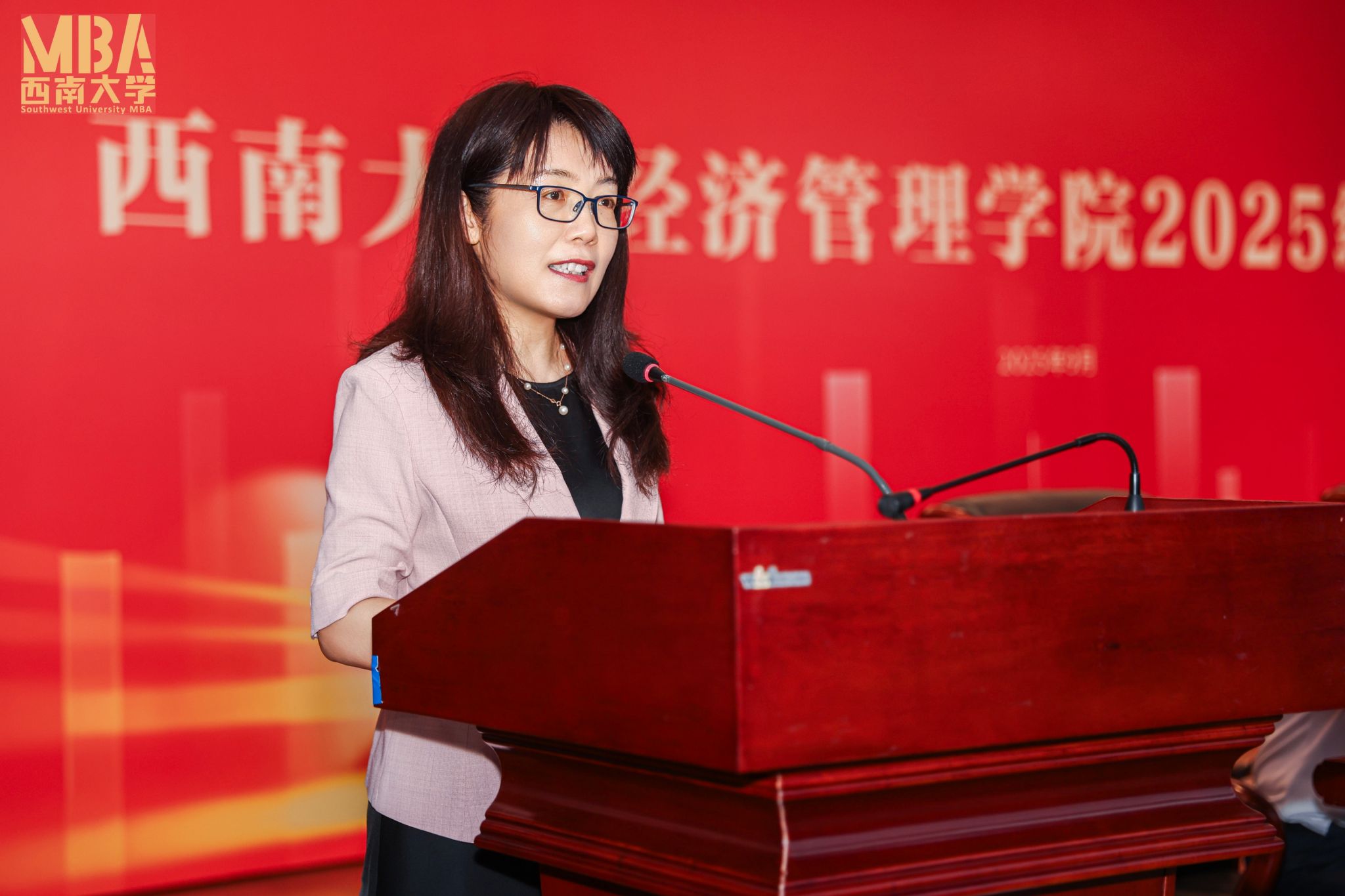 赵玉芳代表公司欢迎和祝贺2025级MBA、MPAcc、MTA全体新同学。她表示,作为教育部直属,教育部与农业农村部、重庆市共建的国家首批“双一流”建设高校,tyc522cc太阳成集团始终以服务国家战略、引领区域发展为己任,站在中国式现代化推进的关键节点,公司正紧扣时代需求,全力推进专业学位教育提质升级。她勉励同学们要扎根时代实践,践行知行合一,做服务发展的实干者,要拥抱变革创新,锤炼系统思维,做引领未来的开拓者,要秉持共创共享,强化团结协作,做担当使命的奉献者。她希望同学们珍惜学习机会,汲取百年西大的精神滋养,潜心治学、追求卓越,在高质量发展和民族复兴征程中书写精彩篇章。
