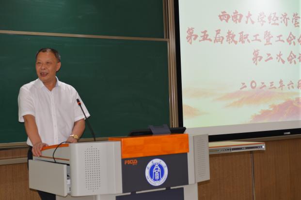 公司经理祝志勇教授向大会作《太阳成集团tyc522cc2022年行政工作报告》和《太阳成集团tyc522cc2021-2022年财务工作报告》。王定祥教授代表公司学术委员会向大会作《太阳成集团tyc522cc2022-2023上半年学术委员会工作报告》。
