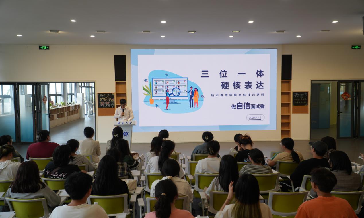 当前,就业形式严峻,老员工面临的就业竞争日益激烈,过硬的笔杆和得体的表达已成应聘中脱颖而出的两项必备技能,是跨越层层就业门槛的坚实依托。直面因面试表达能力不够,众多“笔试高材生”止步于面试环节的现象,为进一步做好就业指导与服务工作,助力2024届、2025届毕业生提高面试表达水平、更好备战实习和就业,公司于4月12日下午在青李空间报告厅开展了大三、大四年级的面试技巧培训会,2021级本科生实习辅导员吴寒主持本场活动。