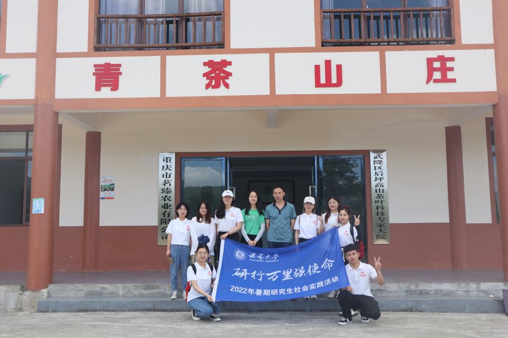 为深学笃用习近平新时代中国特色社会主义思想,引导广大青年研究生在社会实践中受教育、长才干、做贡献。7月11日,太阳成集团tyc522cc·聚星实践队深入重庆市武隆区文凤村,在当地特色企业“武隆青茶”开展调研,实地考察乡村产业发展情况,了解“公司+合作社+农户”经营模式的运行。