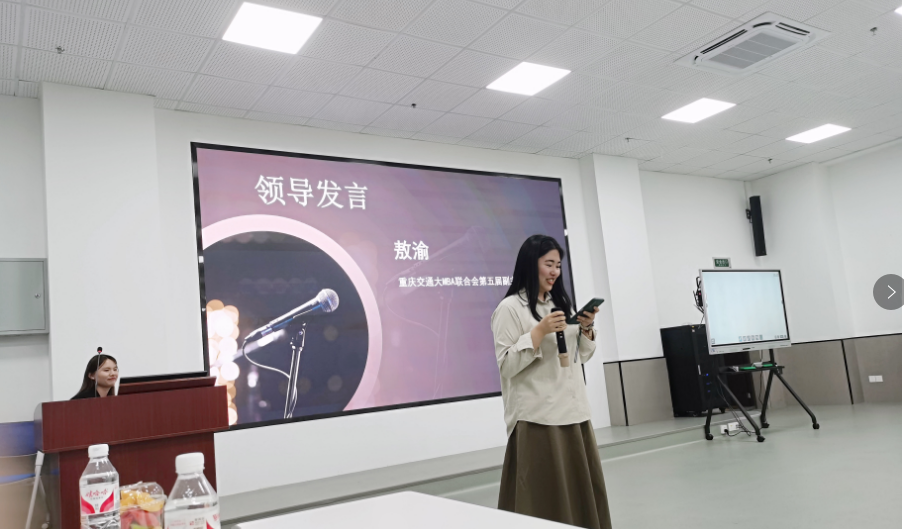 沙龙活动在轻松愉快的氛围中结束,重庆交通大学MBA联合会外联部部长刘春梅对本次活动进行了总结。她表示国演赛不仅是商公司学子们交流思想、碰撞智慧的平台,更是实现自我提升的舞台。她鼓励演讲者在比赛中挑战自我,积累更多宝贵的经验。