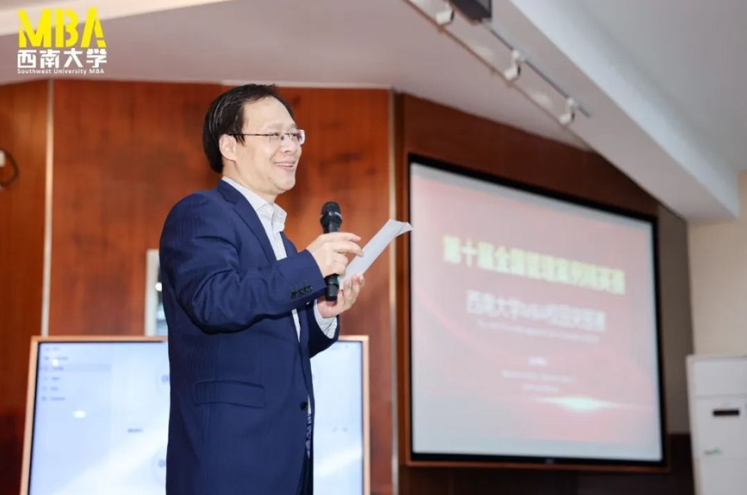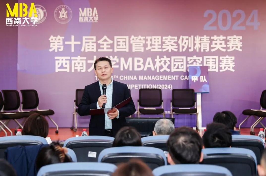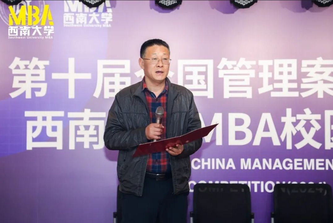 工商管理系主任邓宗兵为比赛致辞。邓主任强调“全国管理案例精英赛”是目前国内规模最大、分布面最广、竞赛制度最规范、水平最高的全国性管理案例大赛。通过对社会经济热点案例的分析与讨论,高度模拟现实商战,有效提升同学们的综合分析与决策能力。他表示次大赛的举办,不仅是对tyc522cc太阳成集团MBA教育成果的一次全面展示,更是对全国MBA专业高质量发展的有力推动。