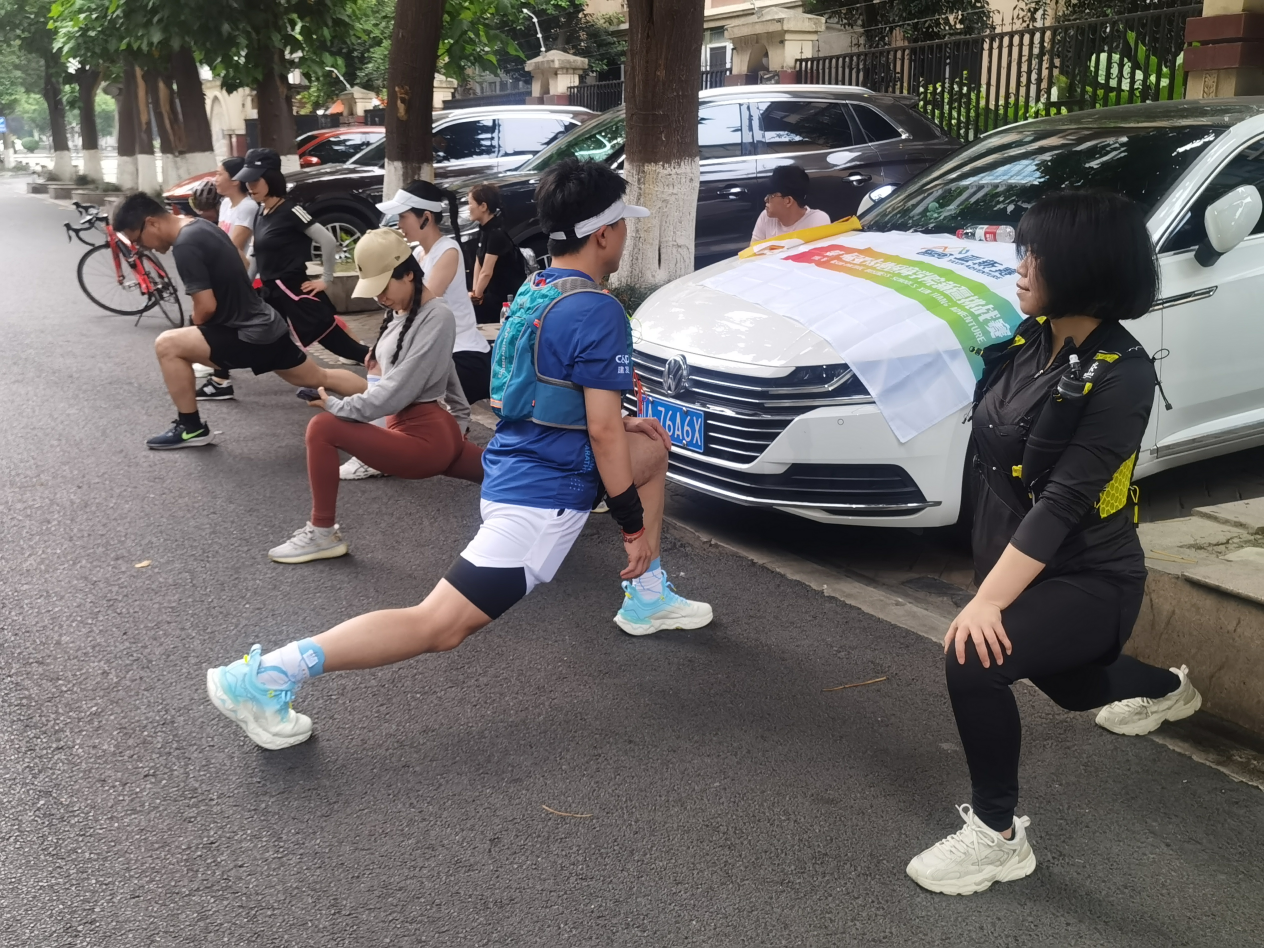 早上06:00新8队员便集合完毕,在领队2018级崇德班李芳和队长2019级崇德班姚遥的带领下,大家经过充分热身后就开始了奔跑。