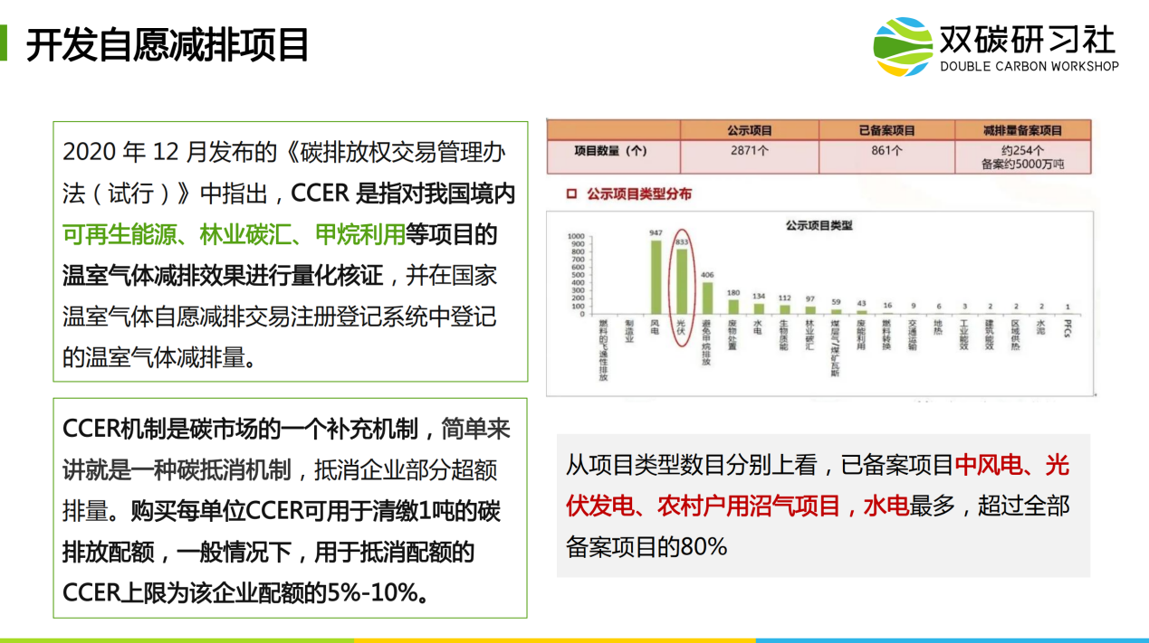 首先,姜老师简要介绍了双碳研习社。该项目作为双碳政策和科普知识宣传推广平台,主要目标为宣传碳中和政策趋势,构建碳市场、碳资产管理、CCER开发、林业碳汇开发、第三方碳核查、碳排放权、碳配额、碳认证等双碳产业链知识体系,帮助企业和个人开展能力建设,促中国碳市场发展,更好地支撑国家“30·60”目标。