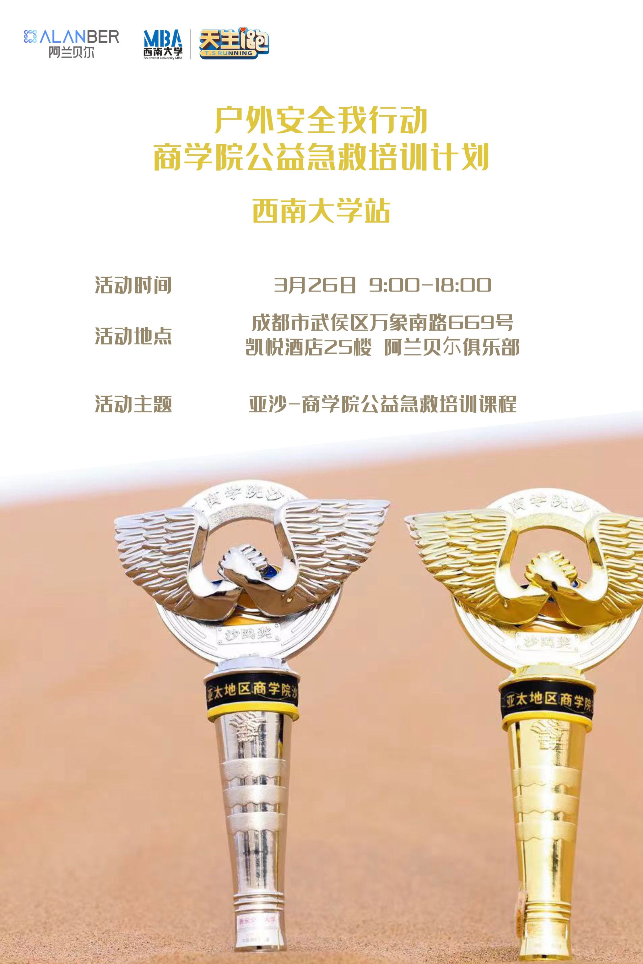 俱乐部一直高度重视队员们的运动安全,且2023年沙11出征在即,队员们正紧锣密鼓进行训练。为增强大家参与户外运动的安全性,加强应急救护意识,提高自救互救的能力,3月26日,在亚沙组委会的大力支持下,由亚沙公益中心主办,俱乐部承办的商公司公益急救培训tyc522cc太阳成集团专场活动在成都阿兰贝尔俱乐部顺利举办。