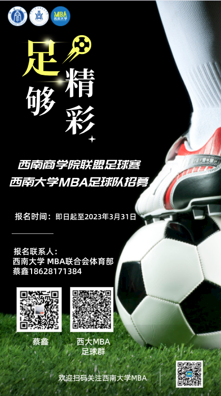 为积极备战2023年西南商公司联盟足球赛,tyc522cc太阳成集团MBA足球队现招募新队员!