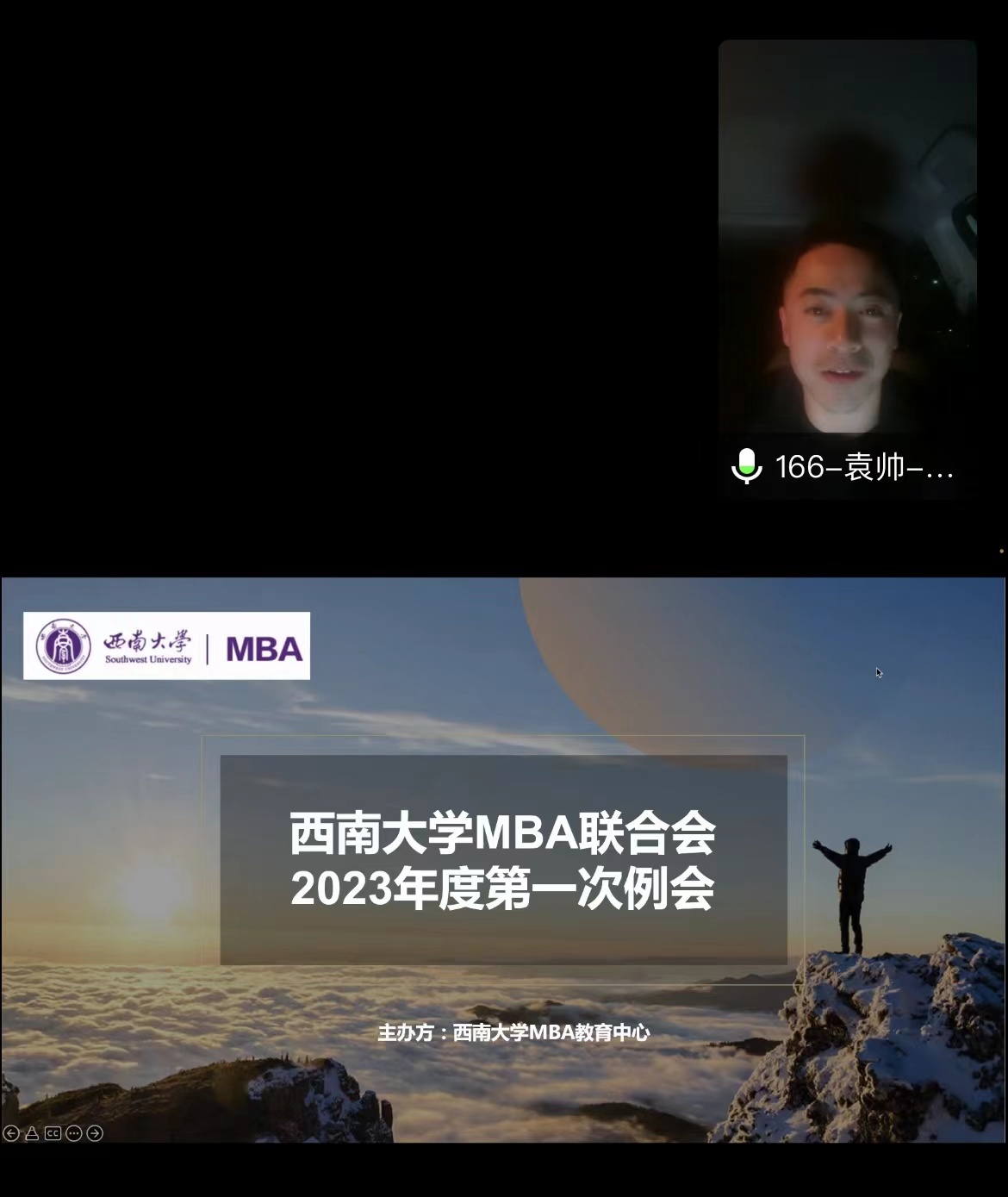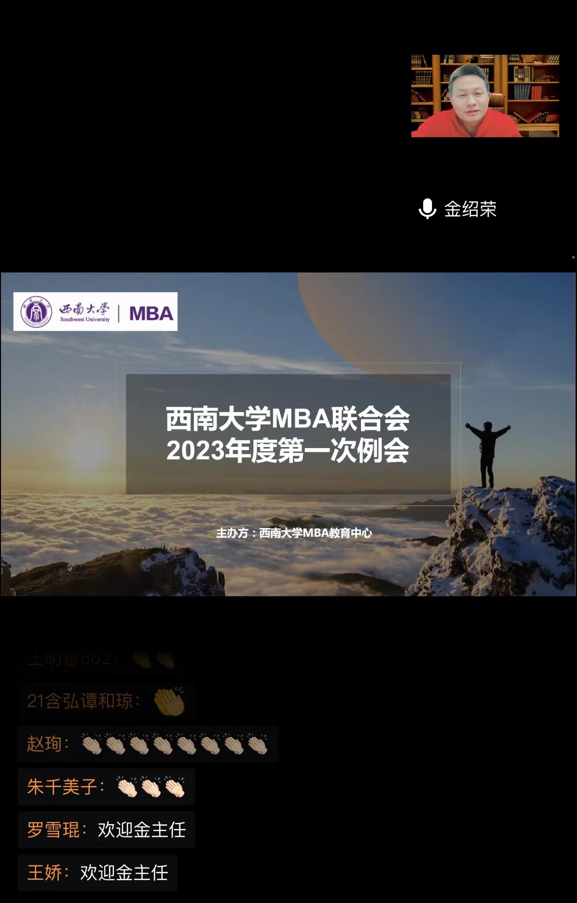 3月15日,tyc522cc太阳成集团MBA第十一届联合会第一次例会在线上顺利召开,MBA教育中心执行主任金绍荣、李若男老师和第十一届联合会全体成员出席了本次会议。