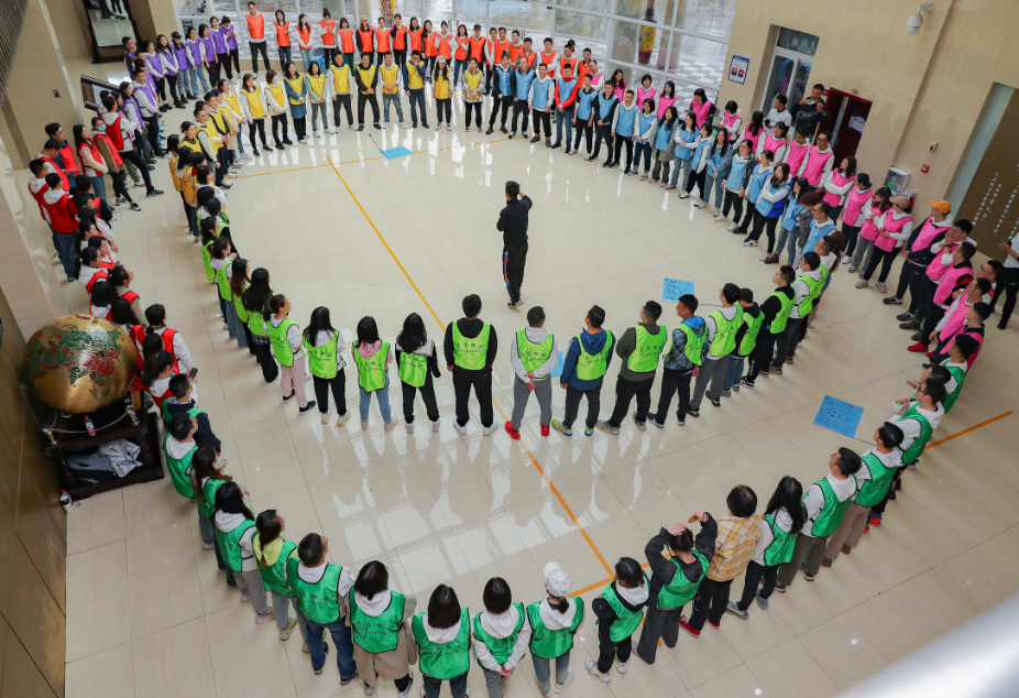同学们首先开启了破冰之旅,然后2个班的同学被随机分成8个队,迎接了四个环节的挑战:手拉手解手链、争分夺秒、疯狂毛毛虫、挑战NO.1
