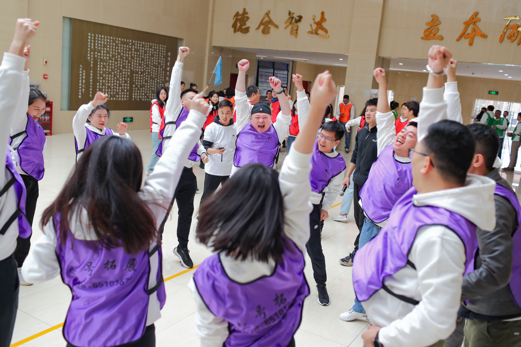 312日,2021级崇德1班和2班联合素质拓展活动在公司一楼大厅举办。