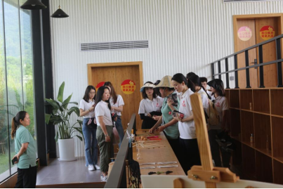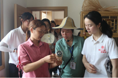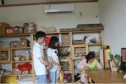 随后,王林带领实践队实地参观竹文化传承基地和竹编工坊,给队员们展示了许多精美的手工竹制工艺品,工坊员工还进行了现场编织教学。王林提到,从前的高桥竹村连硬化路都没有,近几年来,在党和国家的关怀下,在村干部的带领下,在村民的互相帮助下,高桥竹村发生了翻天覆地的变化,并通过一二三产业融合发展实现了深度农旅融合,带动村民增收。