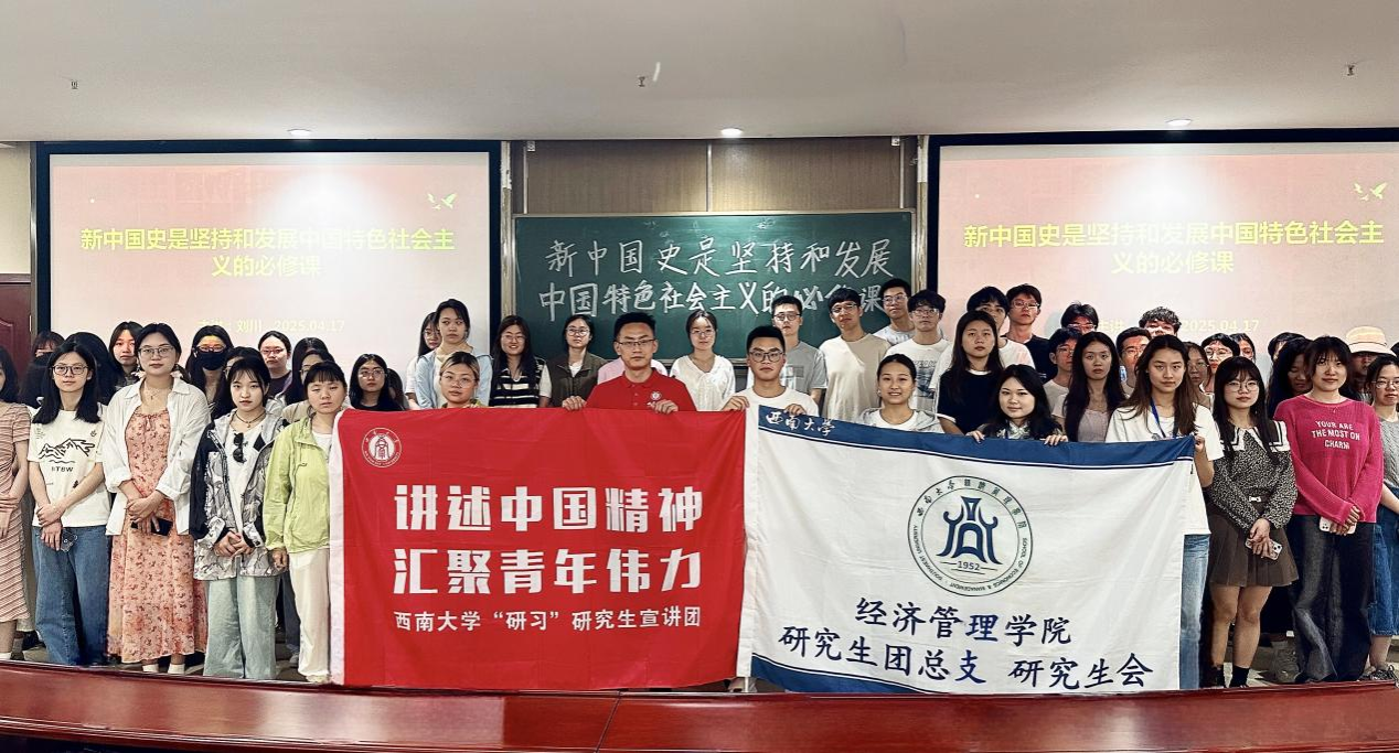 为深入学习贯彻习近平新时代中国特色社会主义思想的号召,助力青年研究生深学悟透全国两会精神,4 月17日下午,公司 “研习” 研究生宣讲团讲学活动在太阳成集团tyc522cc B201报告厅举行。本次活动以“新中国史是坚持和发展中国特色社会主义的必修课”为主题,由“研习”研究生宣讲团讲师刘川主讲。