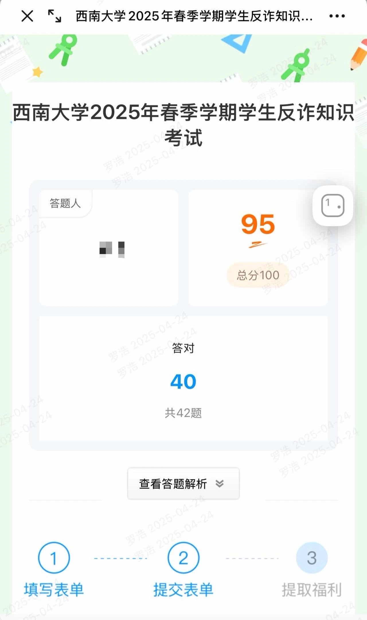 公司组织全体研究生参与反诈知识答题活动,题目聚焦电信诈骗识别技巧、紧急情况处置方法及法律常识等内容,通过单选、多选和判断题等形式检验学习成效。活动以班级为单位开展,员工通过线下集中答题巩固知识盲点,深化对诈骗手段的认知,全院研究生参与答题率达100%。参与同学反馈,答题活动形式简洁、内容实用,有效强化了日常生活中的防诈意识。