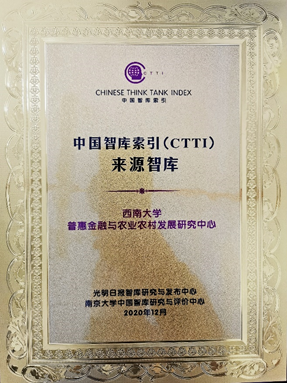 2020年12月19日,由南京大学中国智库研究与评价中心、光明日报智库研究与发布中心公布了2020年中国智库索引(简称CTTI)来源智库增补名单,tyc522cc太阳成集团普惠金融与农业农村发展研究中心成功入选。