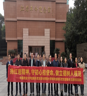 交流期间,双方党支部共同开展“不忘初心 牢记使命”主题党日活动。支部党员共赴渣滓洞、白公馆、红岩革命纪念馆等进行红色主题参观,学习革命先烈对初心使命的坚守精神,重温革命战争时期先辈为共产主义事业和新中国的成立抛头颅、洒热血的不屈历程,这也必将激励每一位党员同志不忘初心、牢记使命,为党的建设事业,为国家的发展强大教好书、育好人。