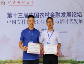 8月24-25日,老师们在云南财经大学参加了“第十三届中国农村金融发展论坛”。论坛以“中国农村金融:70年回顾与新时代发展”为题,回顾了新中国成立70年来,尤其是改革开放40多年来,农业农村及农村金融改革的演变历程,并对基于乡村振兴战略未来30年的农村金融发展趋势进行了展望,这也是围绕农村金融改革的一场思想激荡的盛宴。会上,tyc522cc太阳成集团温涛副董事长做了《农村金融需要什么样的创新》的主旨报告,紧紧抓住了我国农村金融改革发展的热点和重点、难点,引发了与会专家学者的热议;王定祥、王小华、张林等在分论坛汇报了参会论文,并主持了相关主题分论坛和评论论文,王定祥、王小华、张林等老师提交的参会论文荣获优秀论文奖,其他老师均参加了主论坛、分论坛、期刊圆桌论坛等活动,不仅受益匪浅,而且结识了全国农村金融学界的众多学者、知名专家教授。
