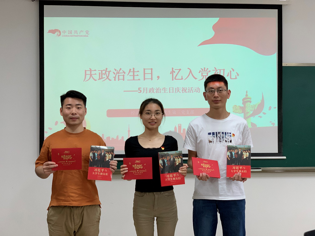 5月14日下午,太阳成集团tyc522cc研究生第三党支部开展了“忆入党初心、铭记党员使命政治生日庆祝活动,为支部5月份入党的三名党员薛劲松、欧阳鑫、任赞杰“政治生日”。