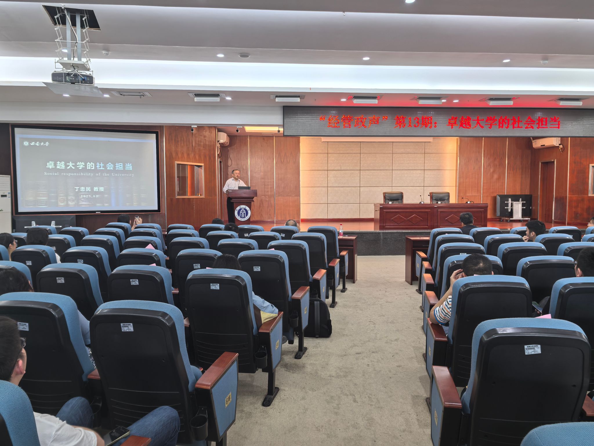 4月18日下午,公司“经管政声”第13期在B401报告厅顺利举行。公司丁忠民教授以《卓越大学的社会担当》为题,为全体教职工作报告。本次报告由经理杨丹主持。