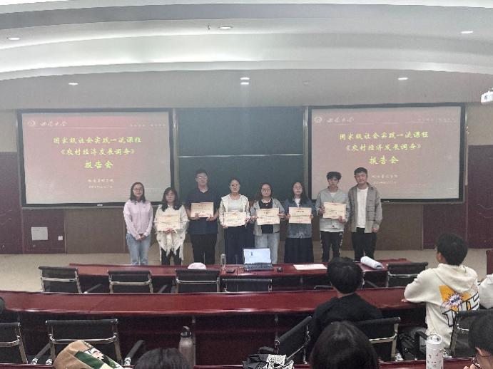 高静与徐亚东对同学们的调研成果给予高度评价,认为此次汇报选题贴近农村实际、问题意识鲜明、调研扎实深入,充分展现了青年学子的社会责任感与专业素养,初步实现了课程“知行合一、服务乡村”的建设目标。高静在总结发言中指出,乡村振兴是关乎国家发展的宏大篇章,本次调研汇报不仅是各年级调研成果的集中展示,更是持续深耕农村经济研究的新起点。她勉励同学们遵循“大一破题、大二见习、大三大四答卷”的成长路径,以专业知识为笔、以乡土实践为墨,在解决真实问题的过程中成长为懂农业、爱农村、爱农民的新时代卓越农经人才。同时,她期待课程团队持续优化“分层分类、数字化+乡土实践”的教学模式,不断丰富课程内涵与实施机制,为培养更多高素质乡村振兴人才、服务农村经济高质量发展贡献智慧与力量。