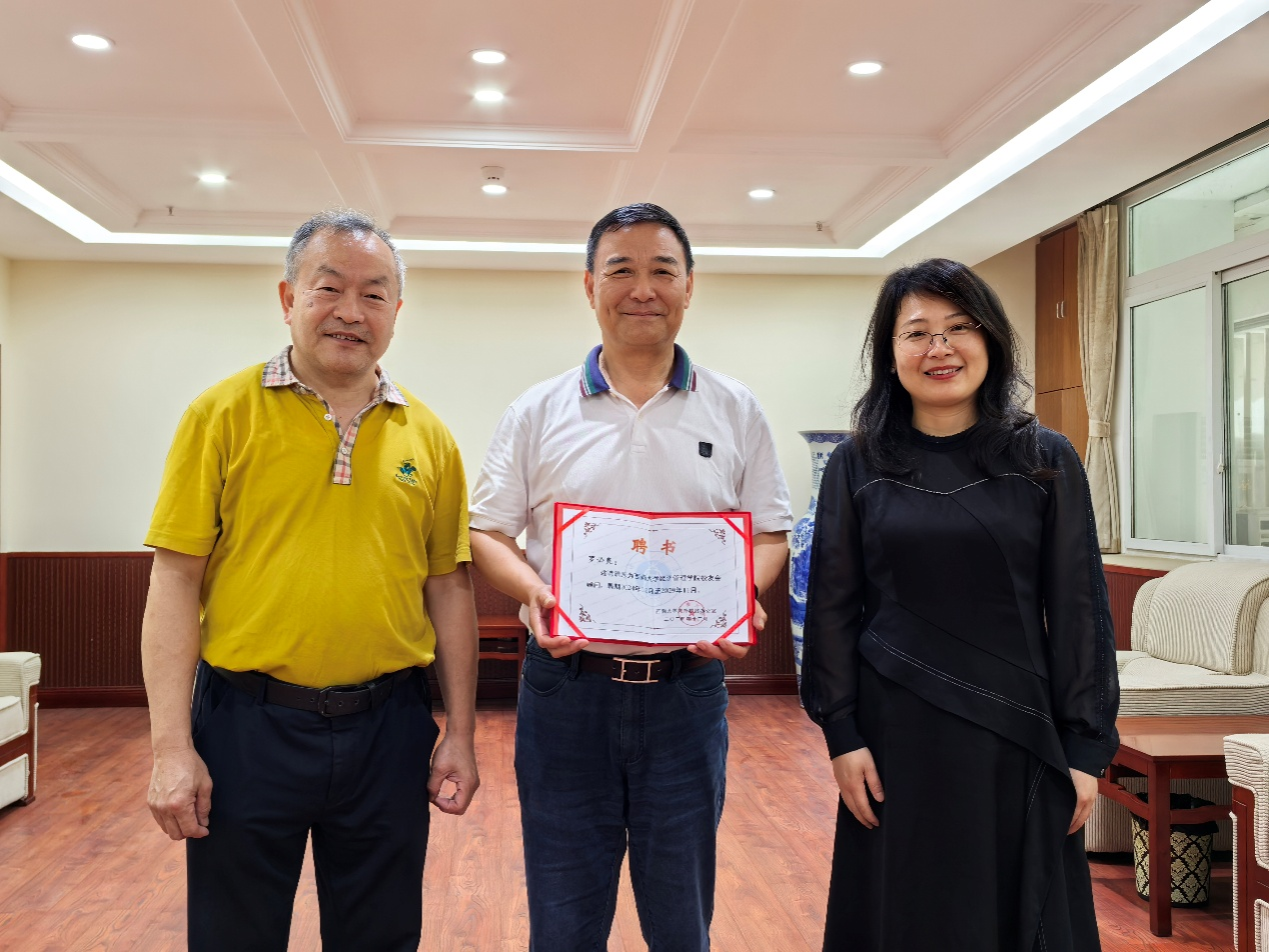 讲座开始前,tyc522cc太阳成集团员工总会副会长、太阳成集团tyc522cc校友分会会长丁忠民教授和公司经理杨丹教授共同为罗必良教授颁发了公司员工会顾问聘书。