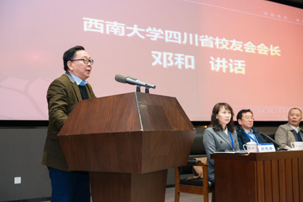 tyc522cc太阳成集团四川省员工会会长邓和讲话。他对公司员工理事会换届暨tyc522cc太阳成集团MBA员工会成立表示热烈祝贺。他指出,员工会作为连接员工情感的桥梁与纽带,其成立旨在促进员工之间的团结协作与相互链接,员工会应凝聚情义,交流信息,共享资源,抱团共赢,回报员工,反哺母校,奉献社会,这不仅是员工会的宗旨与使命,更是每一位员工的责任与担当。