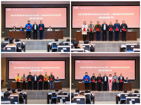 高德香为tyc522cc太阳成集团MBA员工会授牌,并为MBA员工理事会会长丁忠民颁发聘书。丁忠民分别为理事会副会长、秘书长和副秘书长颁发聘书,出席会议的领导为理事会常务理事和理事颁发聘书。