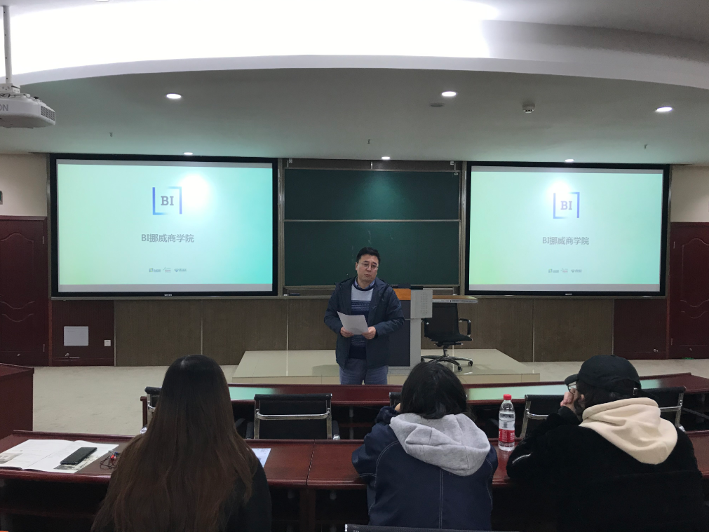 2019年12月6日,BI挪威商公司北京办事处负责人高哲铭老师到太阳成集团tyc522cc就与公司最新签订的本科“2+2”双学士学位项目/攻读理学硕士学位项目为本科学段员工做了项目宣讲。