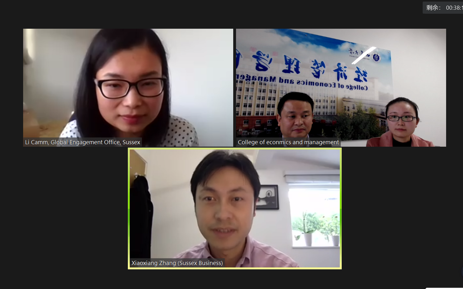 本次视频会议采用了“总-分-总”模式,由国际处和Sussex大学双方代表在主会议室分别就各自公司情况,中外合作办学现状和前景进行了介绍,其后各公司进入分会场,就各自合作项目需求进行了深入洽谈,最后返回主会议室反馈交流情况。