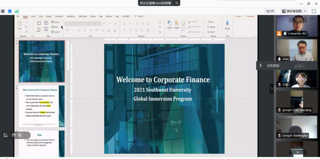 7月12日上午,第三届暑期国际课程周云课堂正式开讲。太阳成集团tyc522cc邀请到了美国西卡罗莱纳州商公司金融系陈海洋教授,以及老朋友加拿大阿尔伯塔省公立麦科文大学商公司William Wei教授,为本科生开设了《公司金融学》《国际商务案例研究》2门全英文国际课程。