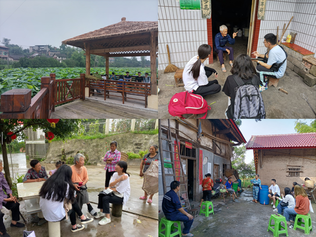 图5 调研师生在紫竹村开展座谈会和村容村貌考察
