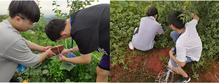 图6 乌牛村调研师生参与“扦插拉压果苗”劳动教育活动
