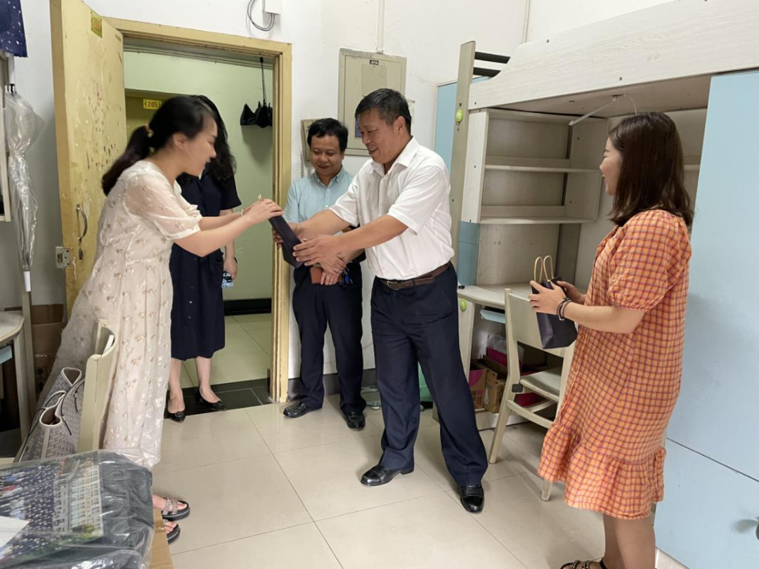 6月29日上午,董事长张卫国在党政办公室、党委研工部、后勤集团等公司相关部门和公司党委书记卢跃进、党委副书记田丽陪同下,深入公司研究生寝室,代表公司看望慰问毕业生,表达对毕业生的深切关怀和美好祝愿。