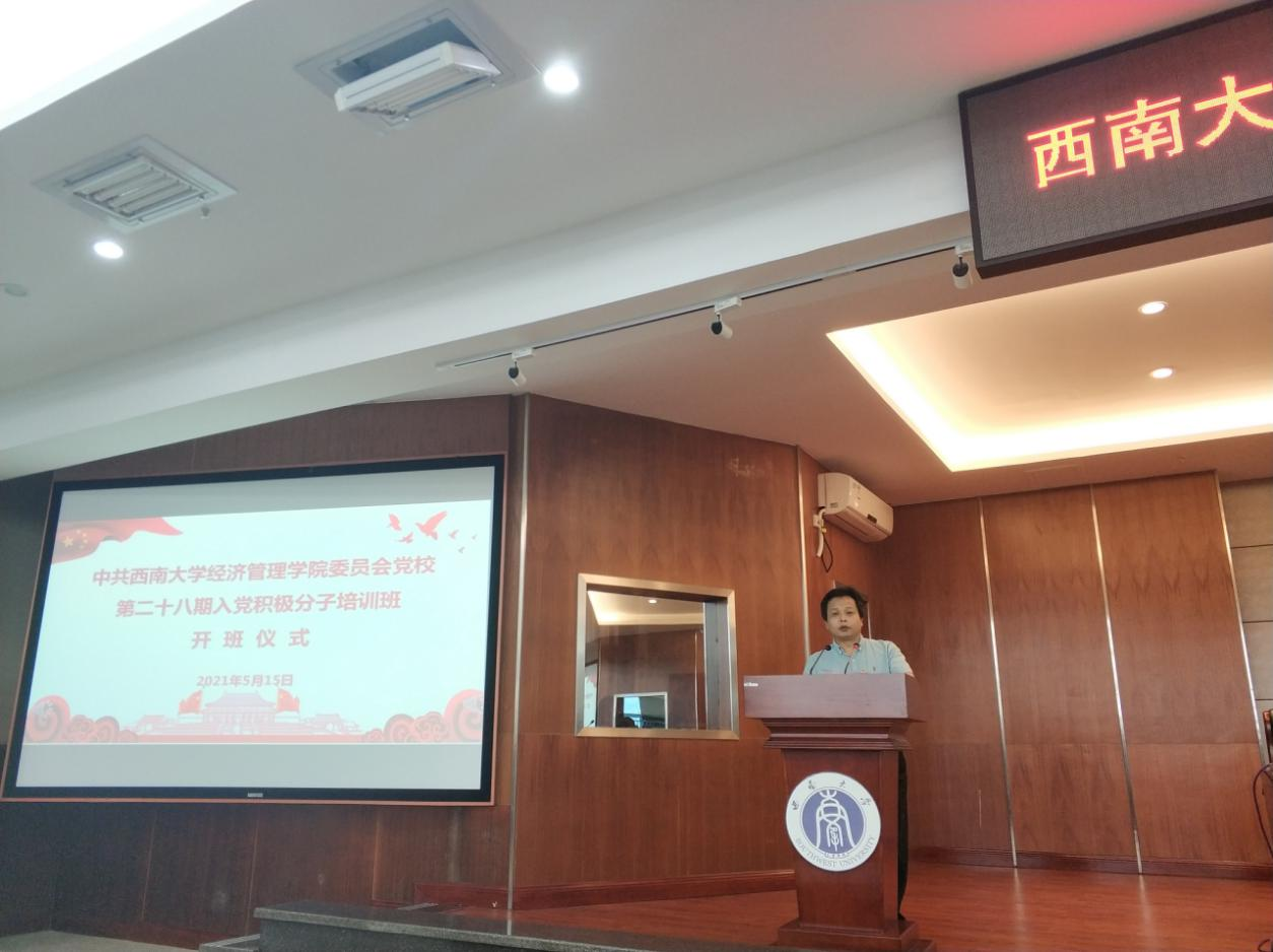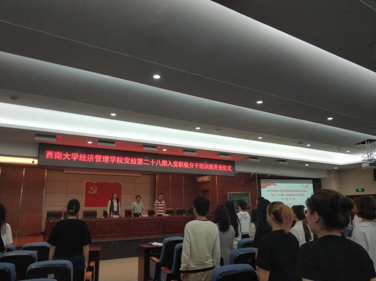 5月15日上午,经济管理公司党校第二十八期入党积极分子培训班开班仪式在公司B401报告厅举行。公司党委书记卢跃进,党委副书记、纪委书记张其光,党委副书记田丽,本期培训班班主任及186名学员参加了开班仪式。仪式由公司党委组织员钱璐主持。
