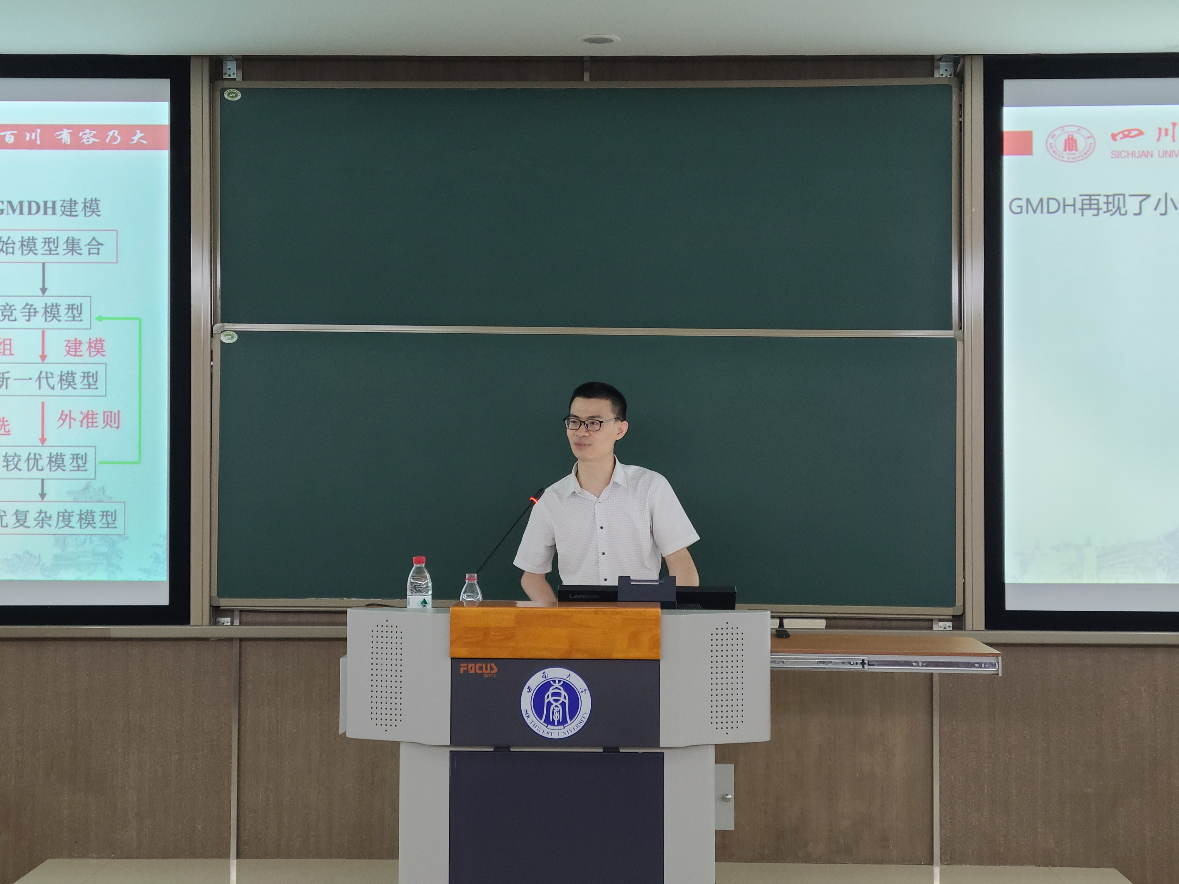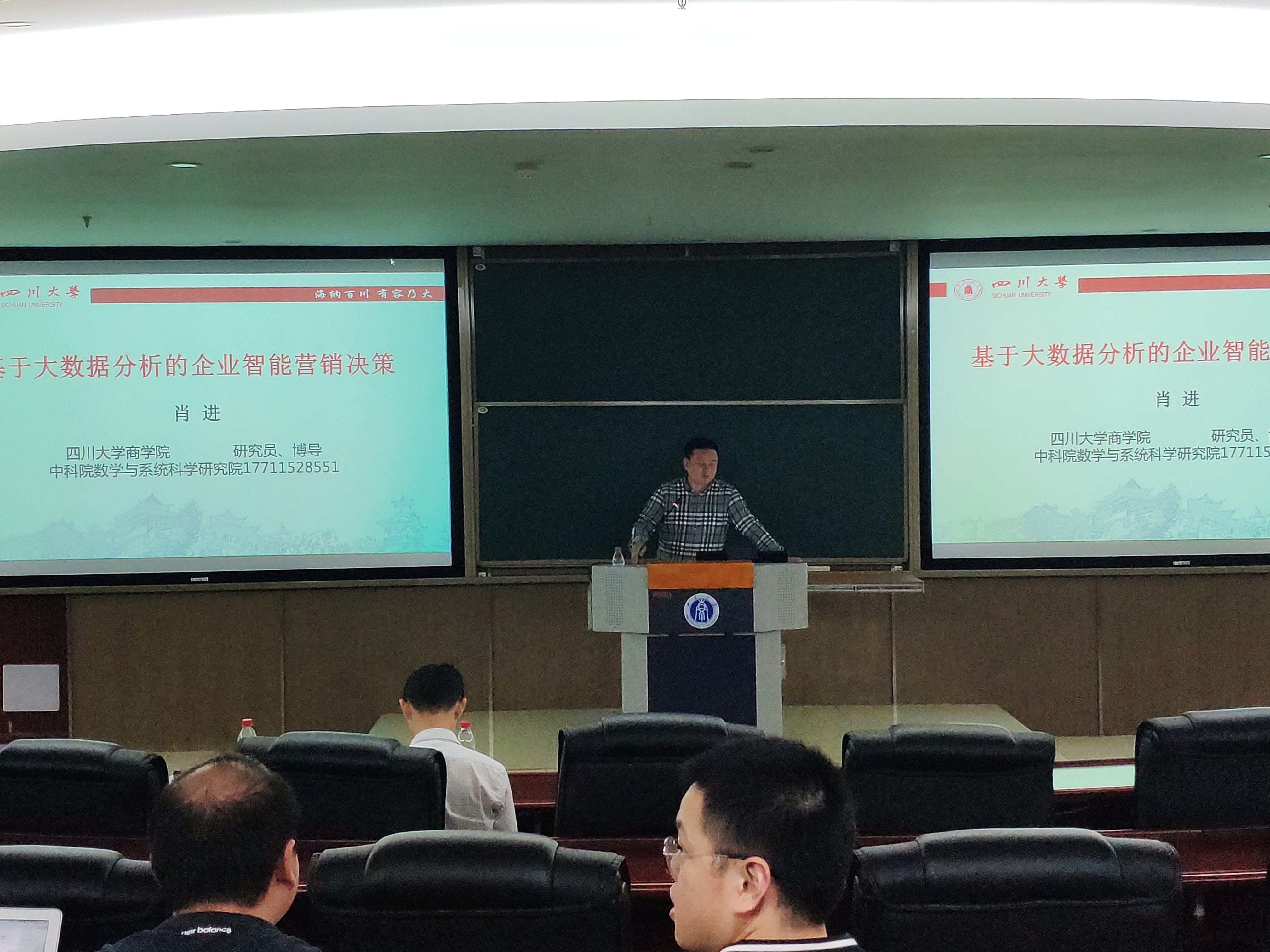 首先,罗超平教授致欢迎词。他介绍说,肖进先生作为首席专家主持了国家社会科学基金重大项目1项,国家自然科学基金项目2项,以及四川省杰出青年基金在内的省部级项目7项,是智能营销方面杰出的优秀青年专家,希望老师们、同学们珍惜这次难得的交流机会。