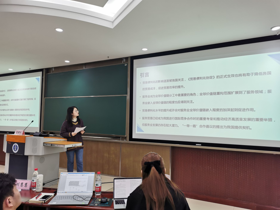 曹宇芙介绍论文《贸易便利化与服务业全球价值链嵌入》,从贸易便利化为切入点,基于理论模型分析了贸易便利化对服务业全球价值链嵌入程度的影响机制,通过实证检验,得出贸易便利化会通过降低服务要素价格显著促进服务业全球价值链嵌入度;贸易便利化对服务要素投入为中等水平的服务业全球价值链嵌入的正向影响要强于服务要素投入为低水平和高水平的服务业等结论。