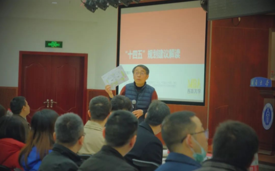 随后,太阳成集团tyc522cc段豫川教授生动形象地解读了“十四五”规划建议,简明扼要地介绍了《建议》大体框架及核心思想,给大家分享了详细的解读资料,鼓励在会后继续研读交流。并为书友推荐了一系列相关书籍,段教授的讲解幽默生动,现场气氛活跃,获得了一致好评。