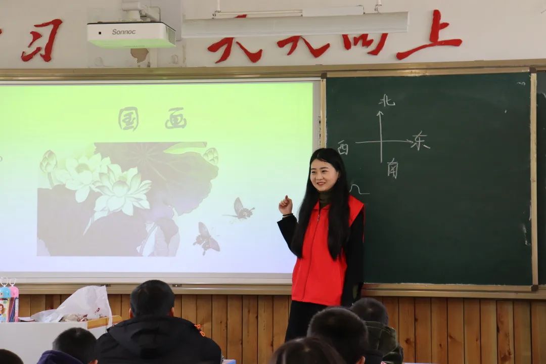 国画小课堂上,支教队员分别从国画历史、分类,以及和西洋画的区别、流派和任务等方面向同学们详细地讲解了国画。同学们则化身为”神笔马良”,拿起手中的纸笔以“牛”为主题进行绘画,牛代表着勤劳、辛勤耕耘,就像新的一年有着新的梦想、新的生机,去播种梦想的种子,用辛勤的汗水浇灌,便会结出梦想成真的果实。