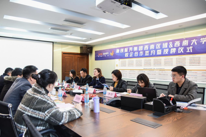 12月15日,经管公司与融创服务集团西南区域校企合作签约暨授牌仪式在渝北融创金茂时代举行。融创服务集团总裁助理兼西南区域总经理张琰、西南区域人力资源部总监万宁一、西南区域培训高级经理李丹、西南区域招聘经理秦龙,公司党委书记卢跃进、党委副书记、纪委书记张其光、副经理罗超平等参加签约仪式。