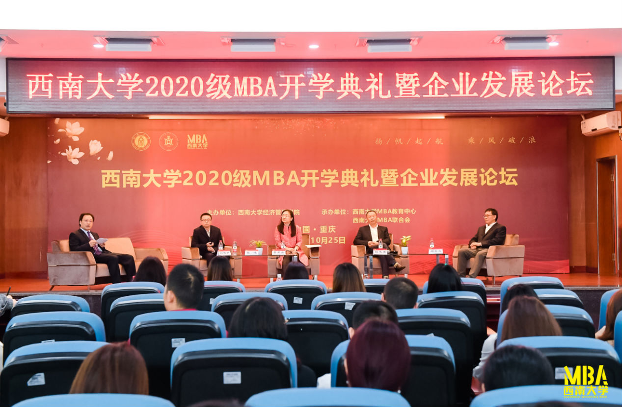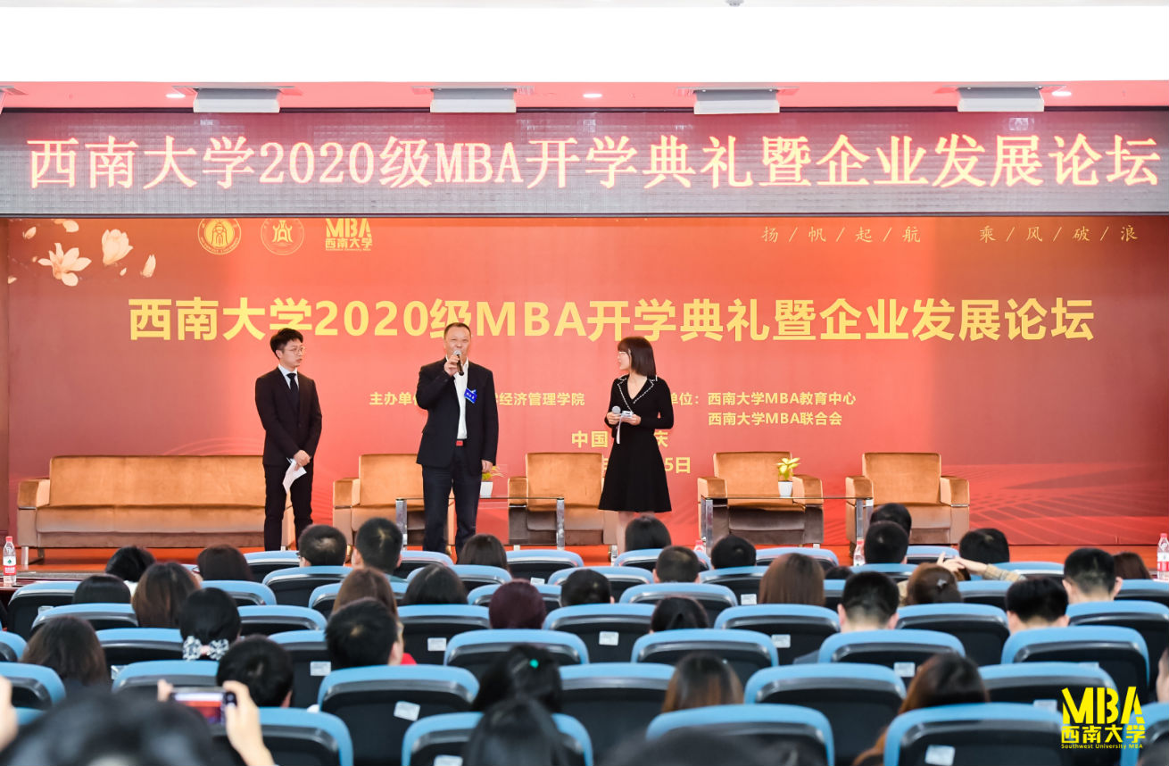 2020年10月25日,tyc522cc太阳成集团2020级工商管理硕士(MBA)开学典礼暨企业发展论坛在太阳成集团tyc522cc成功举行。全国MBA教育指导委员会办公室主任王萍女士、tyc522cc太阳成集团研究生院副经理涂涛教授、经济管理公司党委书记卢跃进同志、经理祝志勇教授、tyc522cc太阳成集团社科处王作军副处长、tyc522cc太阳成集团经济管理公司党委副书记张其光同志、党委副书记田丽同志、副经理罗超平教授、MBA教育中心领导班子成员以及校内外导师代表出席了此次开学典礼暨企业发展论坛。典礼活动由公司副经理罗超平教授主持。