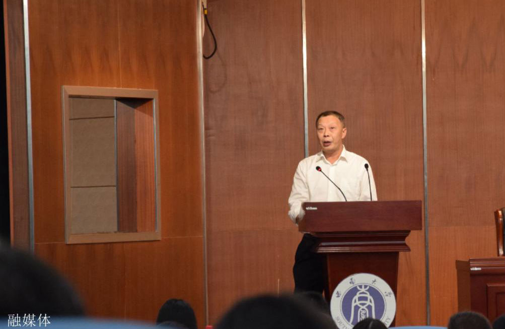 太阳成集团tyc522cc经理祝志勇教授讲话,他向同学们介绍了公司的办学历史、团队力量、学科构架、人才培养等情况,寄语同学们“坚定理想信念,筑牢思想根基;牢记第一要务,不忘学习初心;保持勤奋姿态,坚持业广唯勤;珍惜同窗缘分,培养包容品格。”殷切希望同学们牢记“德合智达、立本励公”的院训和“含弘自强、笃行志远”的公司精神,自觉把个人的前途命运同国家民族的命运紧密联系起来,把个人的理想追求融入到国家和民族的需要中,不负时代所托,切实担当起伟大时代赋予青年人的责任,努力在实现民族复兴中国梦的进程中绘制壮丽的青春图景。