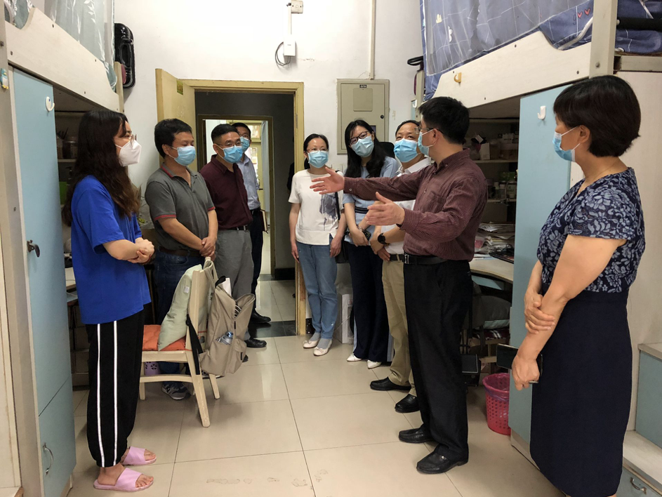 在竹园六舍二楼研二员工寝室,李书记重点就疫情防控期间在线学习情况和返校后论文开题情况与同学们进行了深入交流,并叮嘱同学们注意天气变化,积极锻炼身体,做到学习防疫两不误。